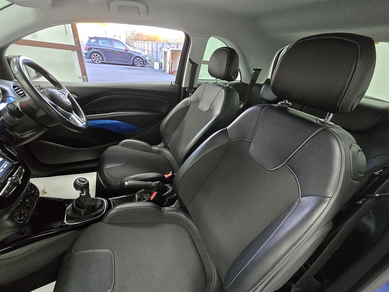 Finished in Lazer Blue Metallic with a black roof and mirror caps, Black cloth Upholstery and 17" Gloss Black Alloy Wheels.