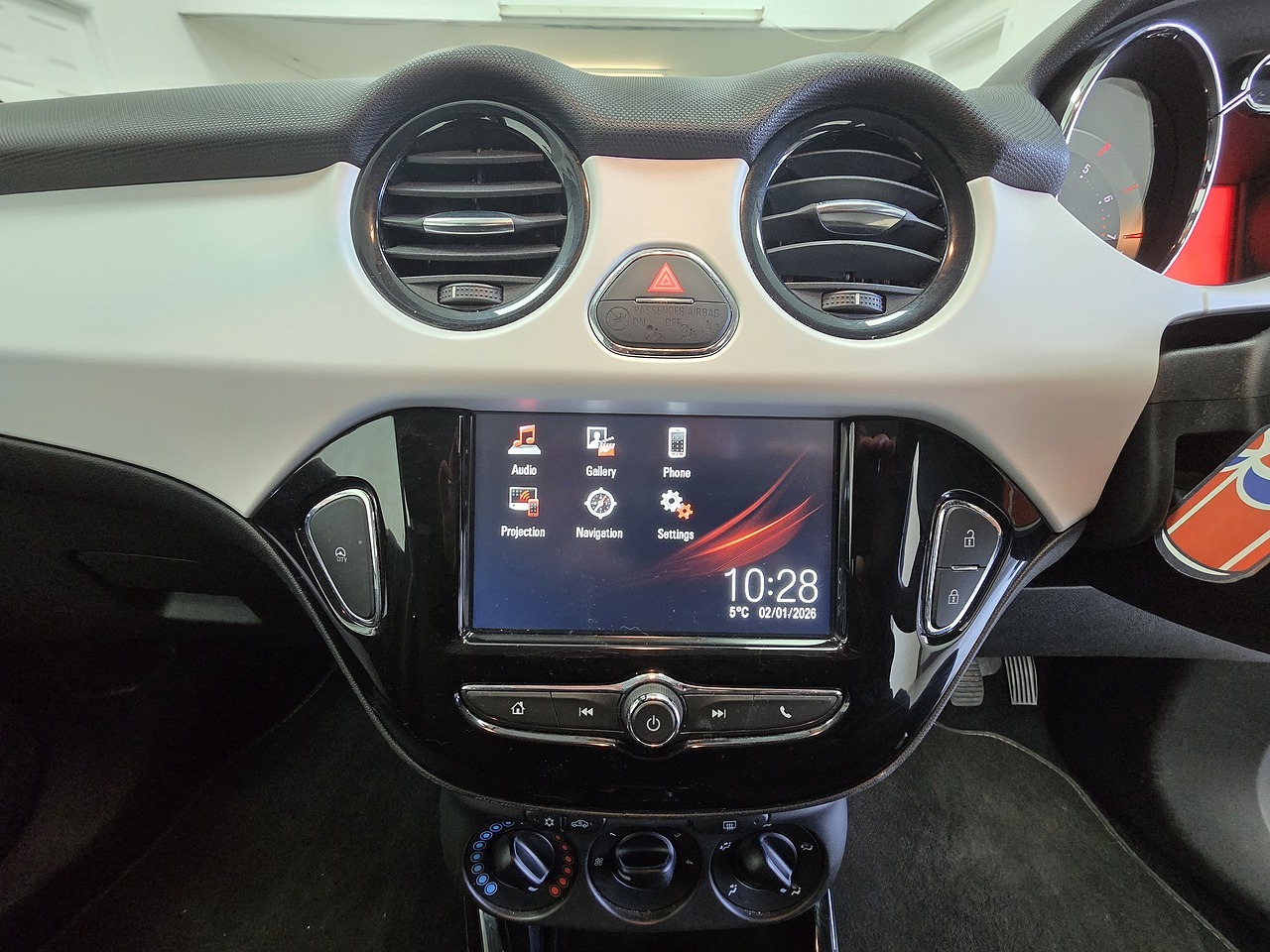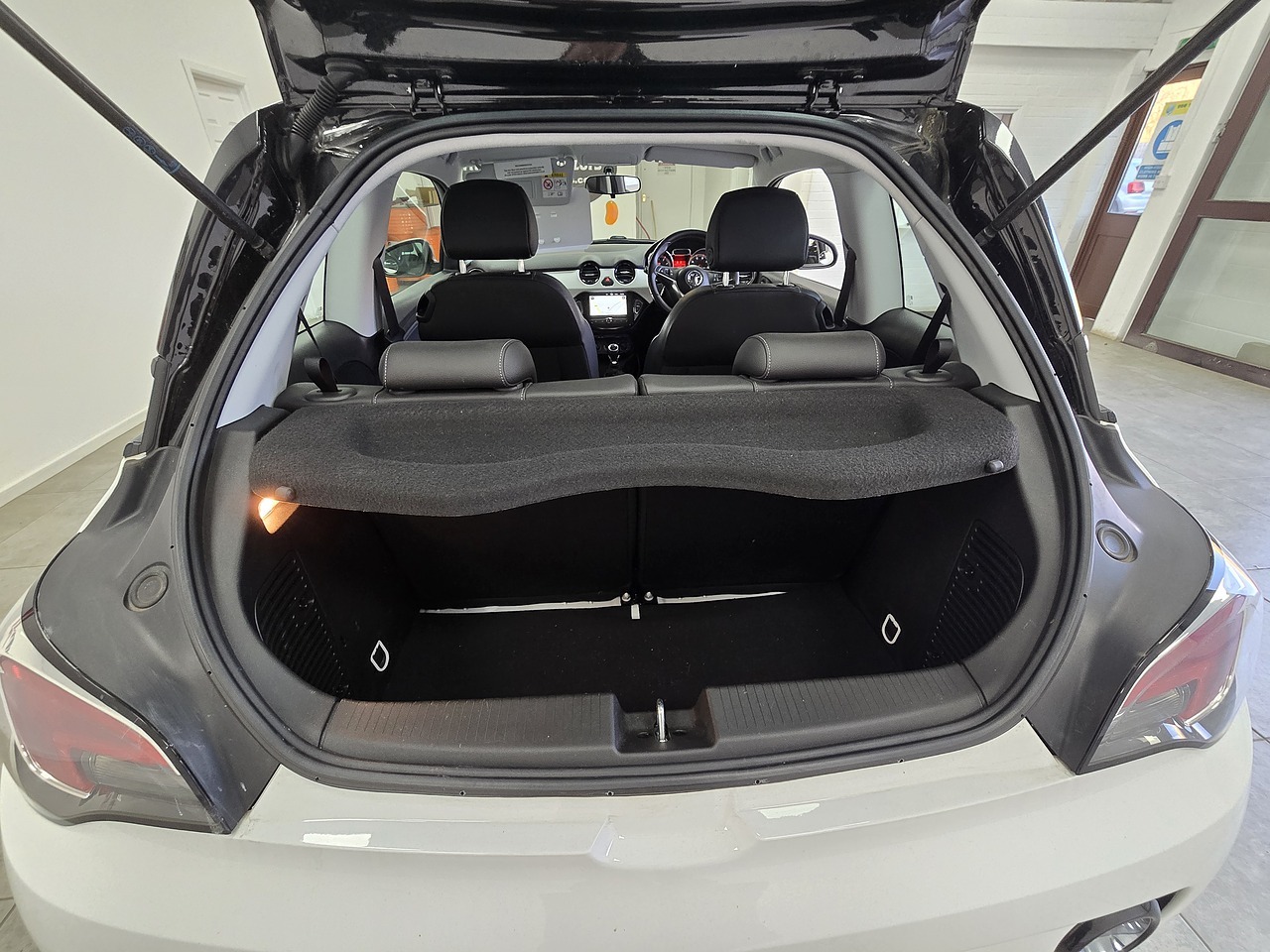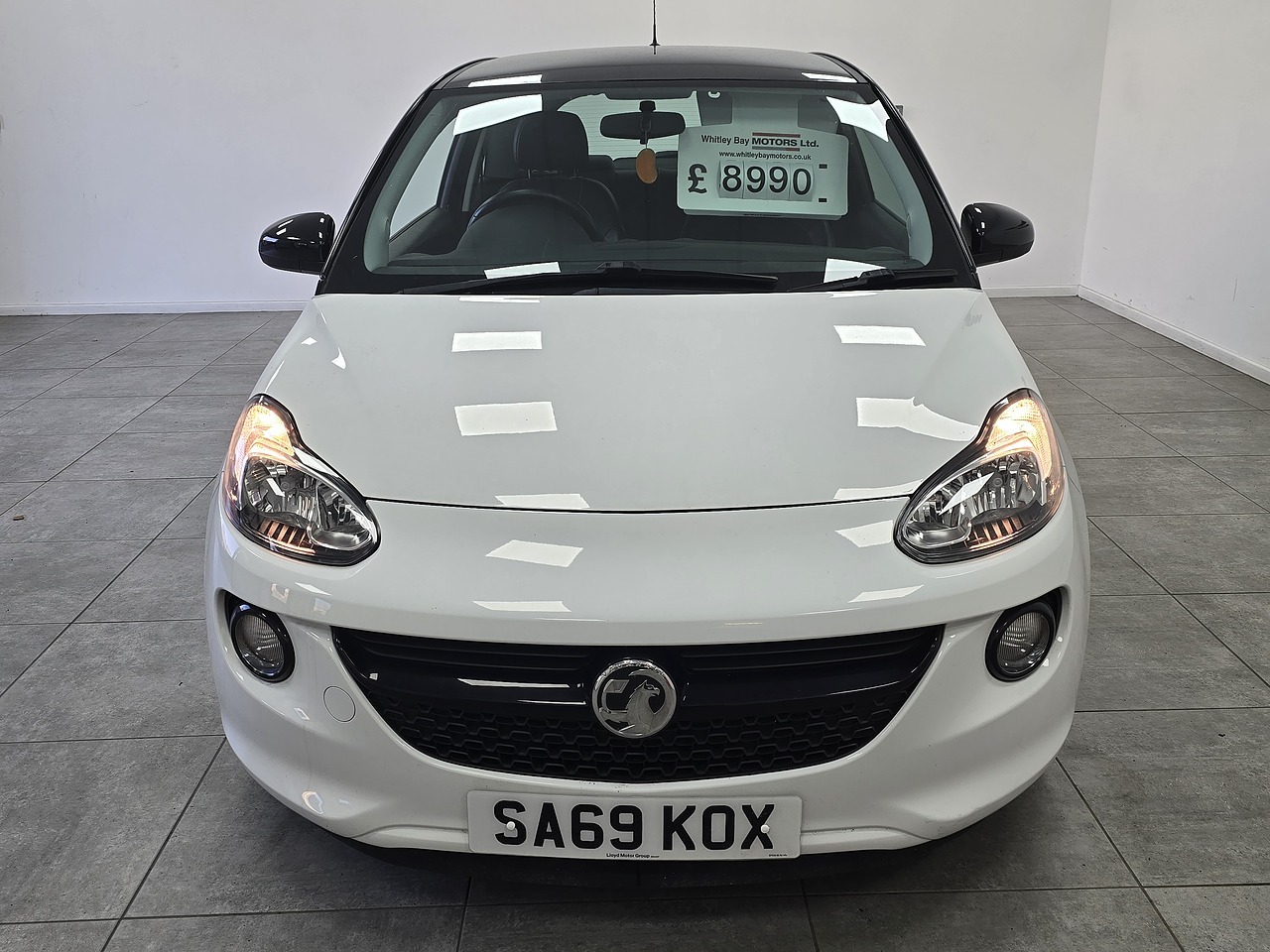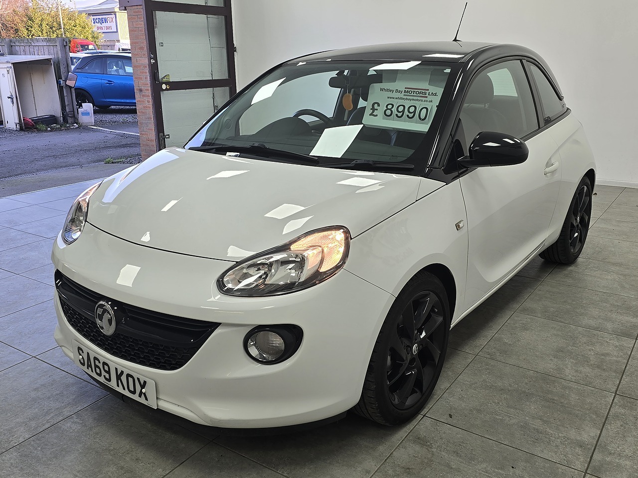 Finished in Ice White with a Black roof and mirror caps, Partial Black Leather/Cloth Upholstery and 17" Gloss Black Alloy Wheels.